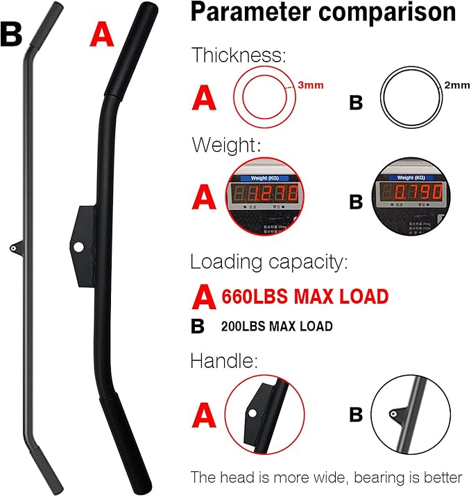 • GOOD MATERIAL: Use good quality steel to make the bar. The thickness of this press down bar is 3mm.And others is about 1.5mm or 2mm.Not strong as our fitness bars.