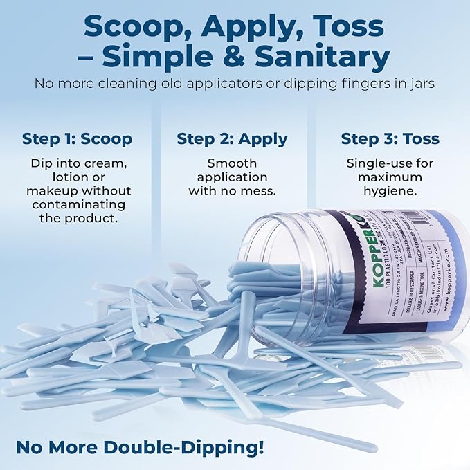 • Clean Out Your Containers: Maximize product use with our 100 pack of 0.25"x2.5" disposable makeup sample spatulas. Easily extract creams, lotions, or makeup from containers, even in tight spaces, without getting product under your nails