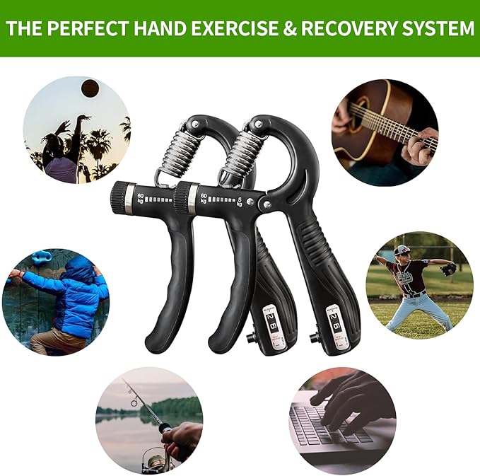 • Perfect Exercise Tool - The Hand Strengthener Kit helps you strengthen and exercise your hands, fingers and wrists. The good choice for athletes (climbing enthusiasts, fitness, tennis, baseball, boxing, tennis, golf and shooting) and musicians (guitarists, bassists, pianists and violinists). It can also be used for computer users.