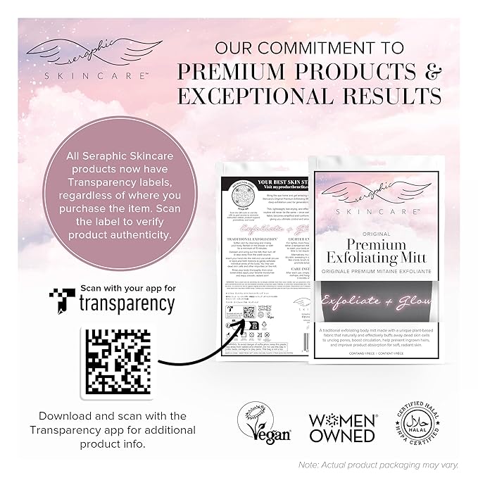 • INDULGE IN AN AT-HOME SPA EXPERIENCE – At Seraphic Skincare, we’re committed to offering premium exfoliating products at affordable prices. We invite you to immerse yourself in the luxurious experience of exfoliation and self-care at home by adding our Korean-style exfoliating mitts to your beauty routine for that glow you’ve been dreaming of!