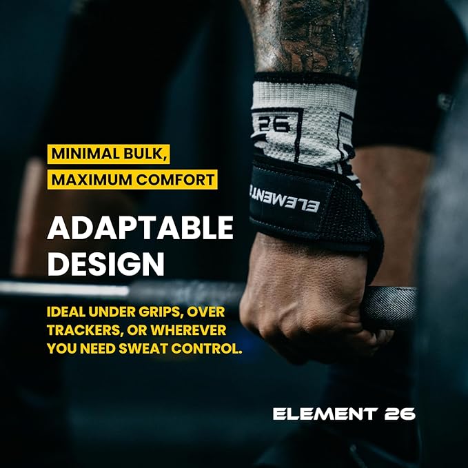 • SWEAT WICKING - Unlike thick fuzzy traditional sweatbands and headbands that cause you to sweat, the Element 26 Wrist Bands are designed to catch the sweat and allow it to dry. Prevent that sweat dripping down to your hands and making the bar extremely sweaty.