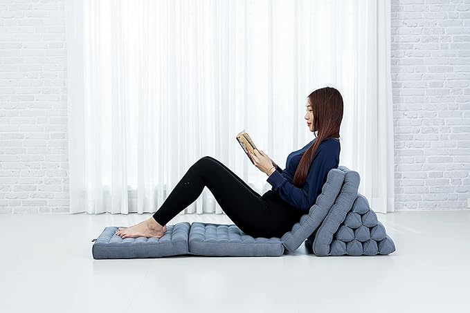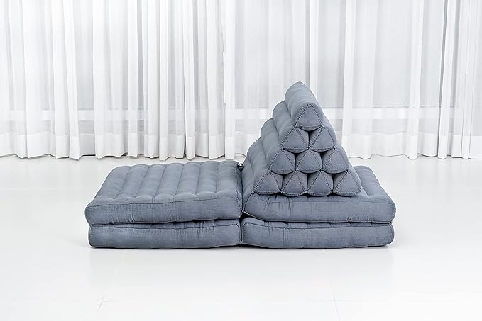 • 4 fold Mat with integrated Thai triangle pillow. Ideal for reading, watching TV, gaming, or as a daybed. This floor pillow lounger doubles as a Japanese futon floor mattress or thai massage mat