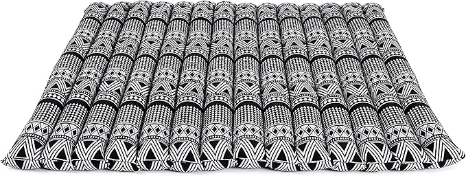 • Contents: The yoga meditation mat measures 28 x 28 x 2 inches (WxDxH) when spread out. After use, it can be rolled-up for storage and transport. The rolled-up mattress measures 28 x 8 x 8 inches (WxDxH)
