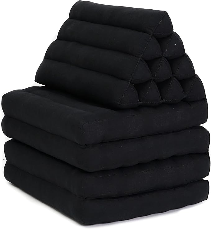 • 4 fold Mat with integrated Thai triangle pillow. Ideal for reading, watching TV, gaming, or as a daybed. This floor pillow lounger doubles as a Japanese futon floor mattress or thai massage mat