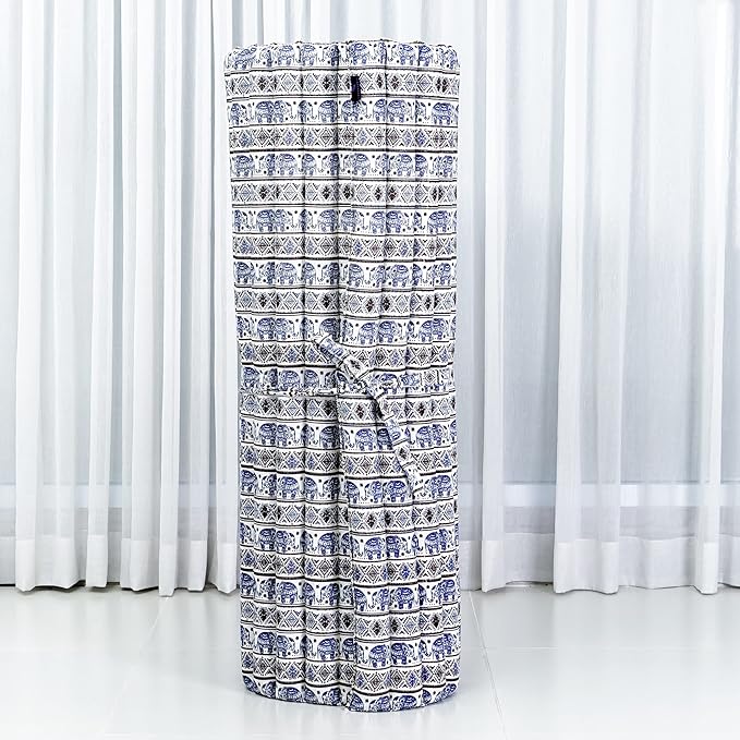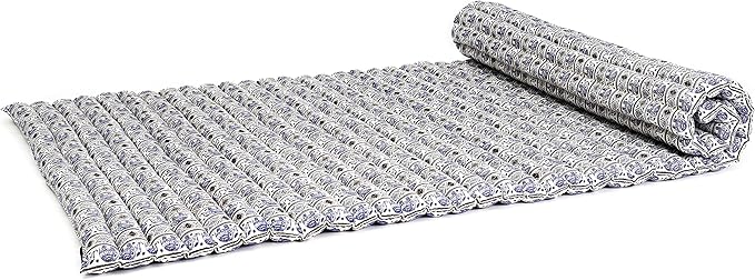 Leewadee - Kapok Roll Mat – Handcrafted Folding Sleep & Relaxation Mattress from Thailand, Ideal as Guest Bed, Camping Mat, Yoga Mat or Traditional Futon, 75 x 39 inches, Blue White