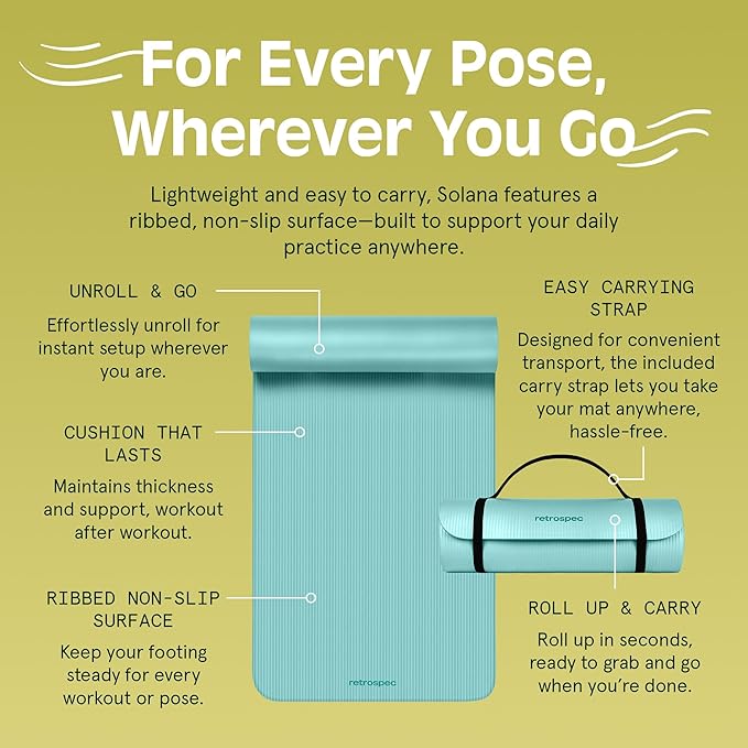 • Non-slip surface: Solana's non-slip material keeps you steady and balanced while staying securely on the floor, preventing injury and allowing you to focus on your practice or workout.