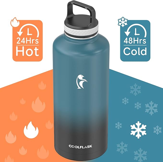 • 48H Cold & 24H Hot: Triple Insulation Technology adopts double wall and vacuum seal, keeps beverages cold for up to 48 hours and hot 24 hours. Anti-sweat coating can keep the surface dry and clean, making it easy to grip.