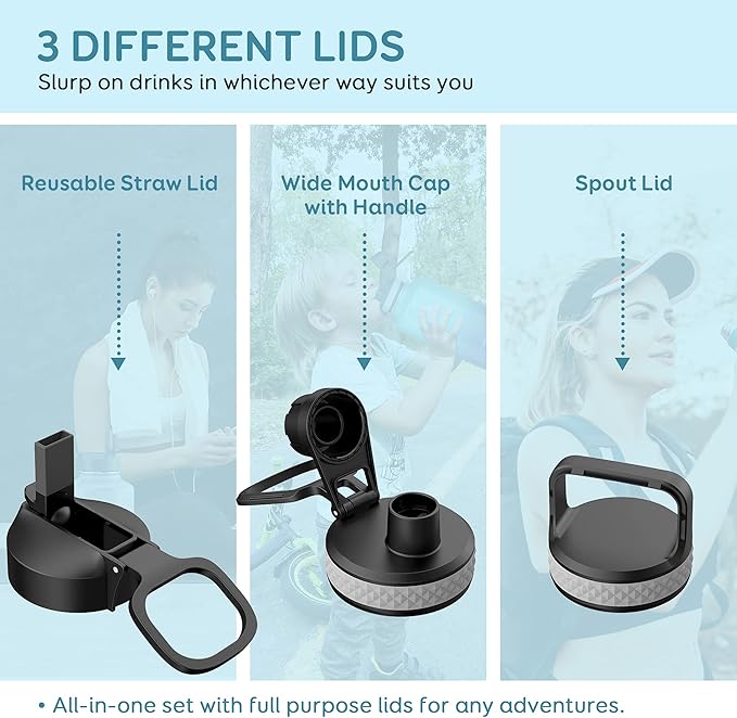 • Flexible Drinking On-the-Go: This water jug comes with 3 different lids. The screw-on lid with flip-up handle is for easy ice refilling with superior portability; spout lid makes it convenient to drink hot liquid and straw lid for sipping cold.