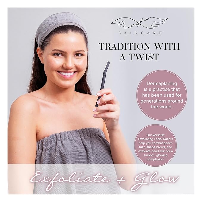 • VERSATILE FACIAL TOOL – Compact, reusable, and coming in a 3-pack, Seraphic Skincare’s Exfoliating Facial Razors are great for dermaplaning, removing peach fuzz, and shaping brows. Whether at home or on the go, you can get that fresh and clean look anytime, anywhere!
