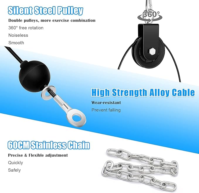• πŸ’ͺ【Double Pulleys】 The combination of double pulleys can achieve more exercise actions, which is favored by fitness enthusiasts.