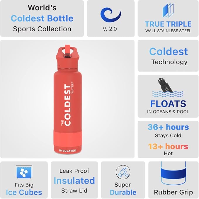 • 𝐀𝐃𝐕𝐀𝐍𝐂𝐄𝐃 𝐈𝐍𝐒𝐔𝐋𝐀𝐓𝐈𝐎𝐍 𝐓𝐄𝐂𝐇𝐍𝐎𝐋𝐎𝐆𝐘: Coldest reusable water bottles are your solution to tepid sips. With the world's first fully insulated straw lid, this bottle keeps your drink cold for 36+ hours and hot for 13+ hours, ensuring your drink stays at the perfect temperature throughout the day. Cold-tested against 50+ leading brands, its superior performance guarantees an unmatched experience. Upgrade now to the Coldest Water Bottle and bid farewell to temperature woes.