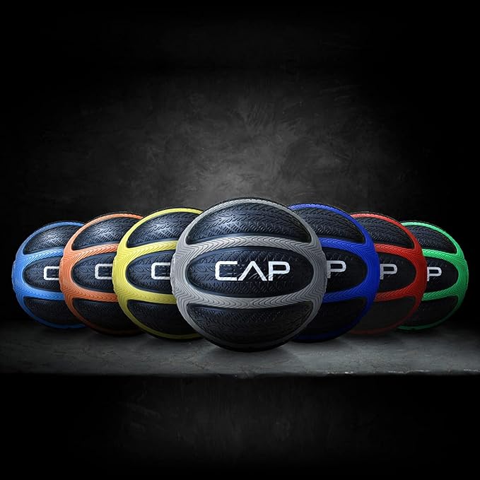 • 💪 THIS BUNDLE INCLUDES 4lb, 6lb, 8lb, 10lb, 12lb, 15lb and 6-tier medicine ball rack. The CAP Barbell medicine ball is made of natural rubber with advanced processing technology. The inner ball is solidly weighted while the outer dual-grip shell is designed to slick prove.