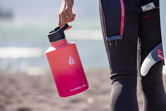 HYDRO CELL Stainless Steel Insulated Water Bottle with Straw - For Cold & Hot Drinks - Metal Vacuum Flask with Screw Cap and Modern Leakproof Sport Thermos for Adults (Coral/Punch 64oz)