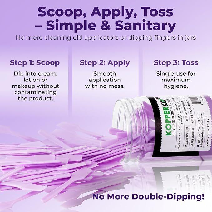 • Clean Out Your Containers: Maximize product use with our 500 pack of 0.25"x2.5" disposable cosmetic plastic spatulas. Easily extract creams, lotions, or makeup from containers, even in tight spaces, without getting product under your nails
