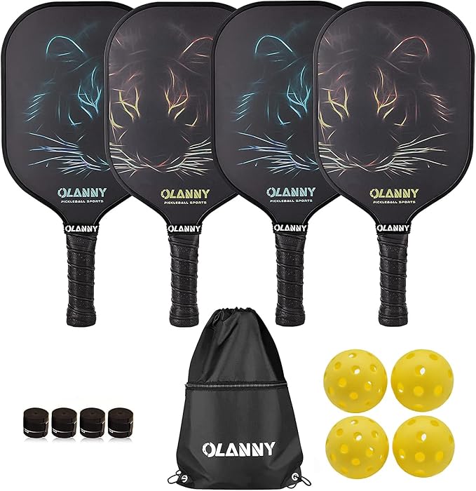 • Unbeatable value of pickleball paddle - Our pickleball set includes four premium pickleball paddles,4 pickleballs, 4 Replacement Soft Grip & one Carrying Bag for convenient carry and storage of your pickleballs. The lightweight portable racquet allows you to swing freely on the court.Everything you need to hit the court! Pickleball games are great fun and healthy when spending time with friends and family.