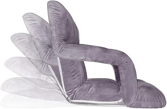 WoodShine Adjustable 6-Position Padded Floor Chair with Arms Folding Chair for Floor Seating Video Game Chairs 43inch*28inch(Morandi Grey)