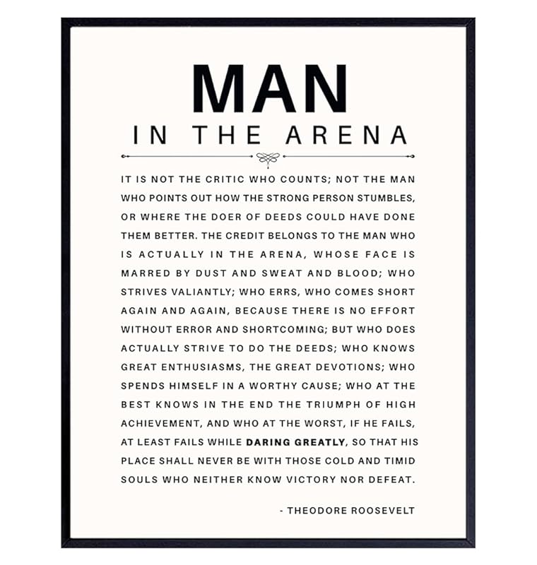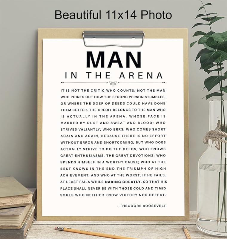LARGE 11X14 - Man in the Arena - Inspirational Quotes - Teddy Roosevelt Poster - Motivational Gifts for Men, Boys, Teens, Entrepreneur - Office, Living Room, Bedroom Wall Art Decor - Daring Greatly