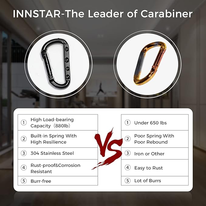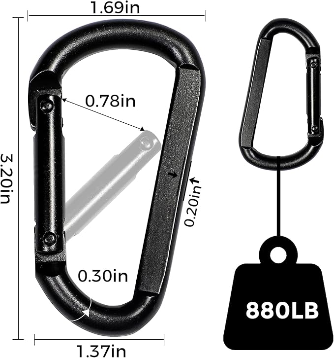 • 【Heavy Duty&High Loading Capacity】: Our carabiner Clips Weigh about 7.8 oz. each pair. HEAVIER and LARGER than other similar products on the market.Maximum load capacity is up to 880LBS.It allows you to use it for various tasks indoors and outdoors.Suitable for non-life support uses.
