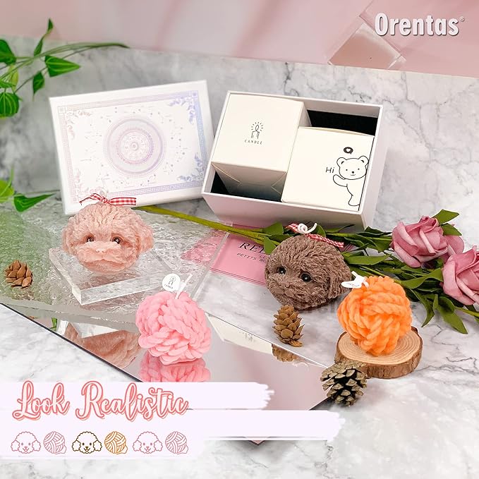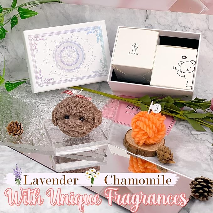 Handmade Teddy Dog Candle Set & Twisted Rope Ball Aromatherapy Aromatherapy Scented Candle Gift Set, Birthday Gift, Thanksgiving Gift, Christmas Gift (Brown/Orange Set)