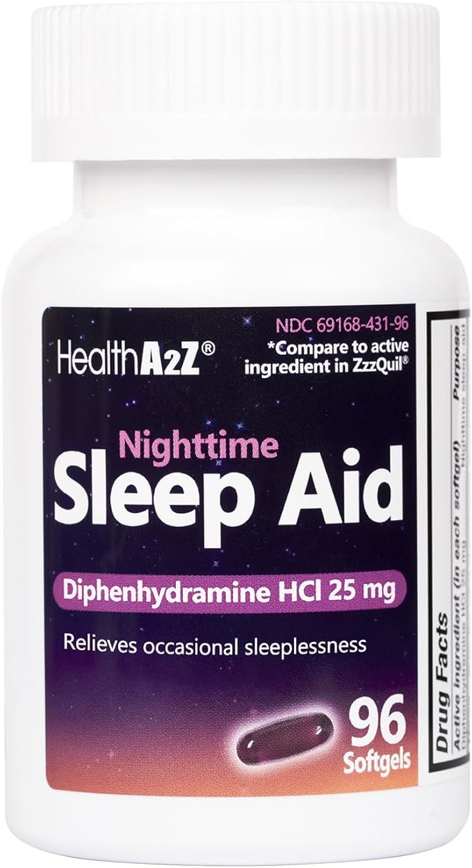 HealthA2Z Sleep Aid, Diphenhydramine HCl 25mg Softgels, Supports Deeper, Restful Sleeping, Non Habit-Forming (96 Softgels)
