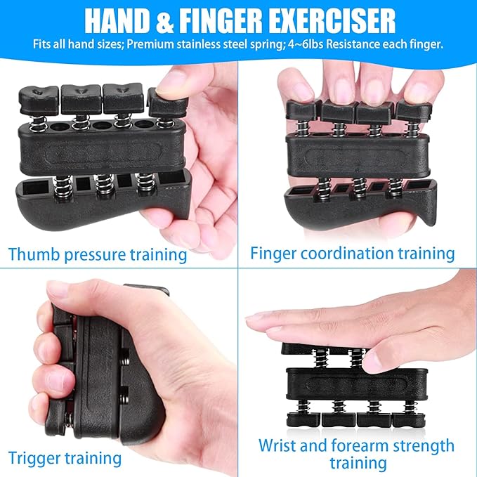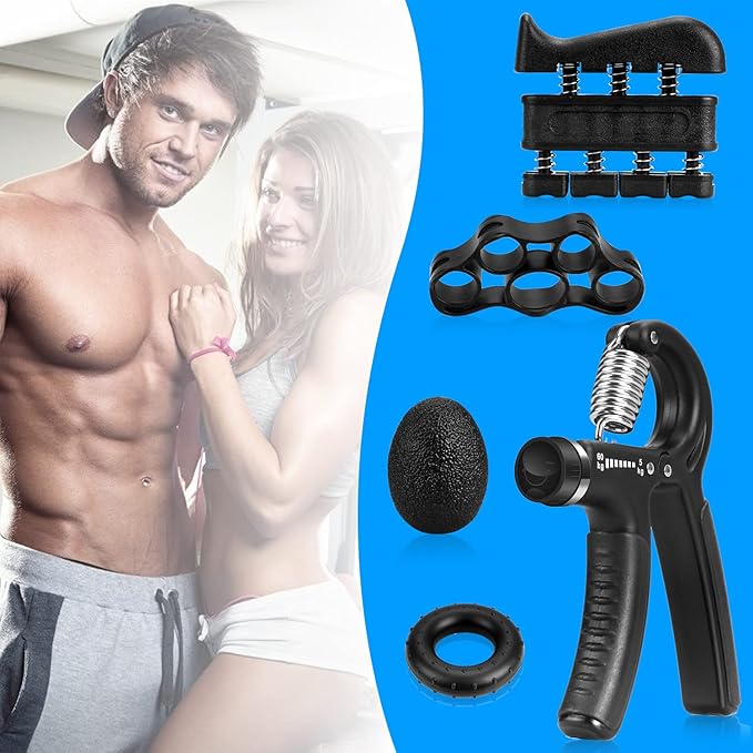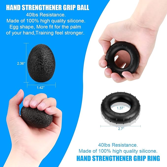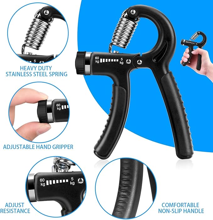 • 【Hand Grip Strengthener Forearm Grip Exerciser Kit - 5 Pack】: Contains Hand Grip Strengthener (11lbs~132lbs Adjustable), Finger Exerciser, Finger stretcher Resistance Band, Hand Strengthener Grip Ring and Stress Relief Grip Ball. Portable, you can put it in your pocket. Even in this fast-paced era, you can take time to exercise or release stress. Old School Fitness Style! You will like them.