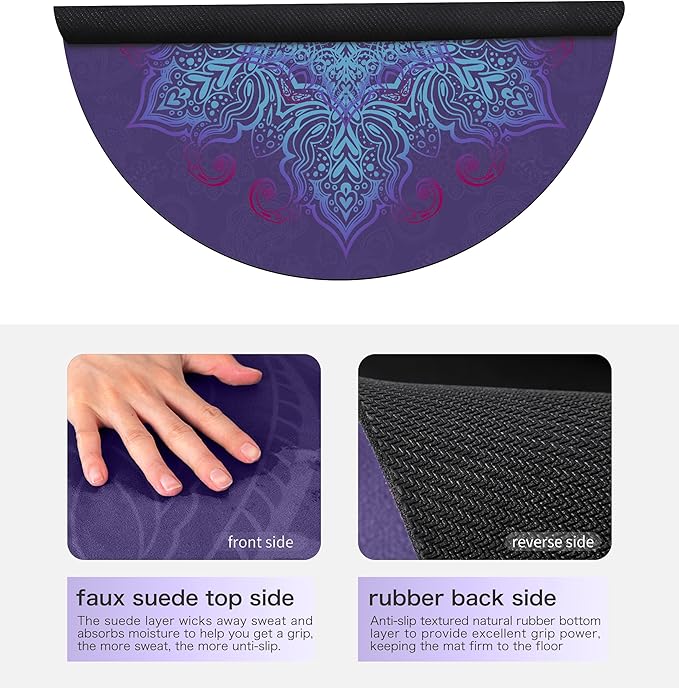 Round Meditation Pilates Yoga Mat Luxury Suede Large Yoga Mat Natural Rubber Non-Slip Base is ery Suitable for Meditation, Stretching, Yoga Environmental Protection, Fitness Exercise, Home and Outdoor. 140CM Diameter