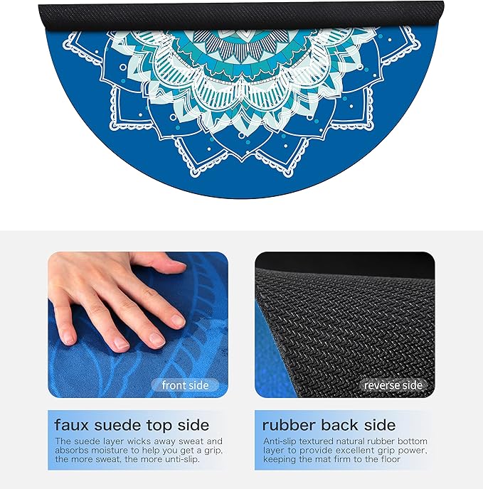 • Material: Keolorn yoga mat is made of natural rubber and suede. This suede yoga meditation mat has a diameter of 55" (140cm). The extra-large round mat is made of non-toxic and environmentally friendly natural rubber. The thickness of 3.5mm protects sports People are less likely to be injured during exercise, and relieve joint pain during exercise.
