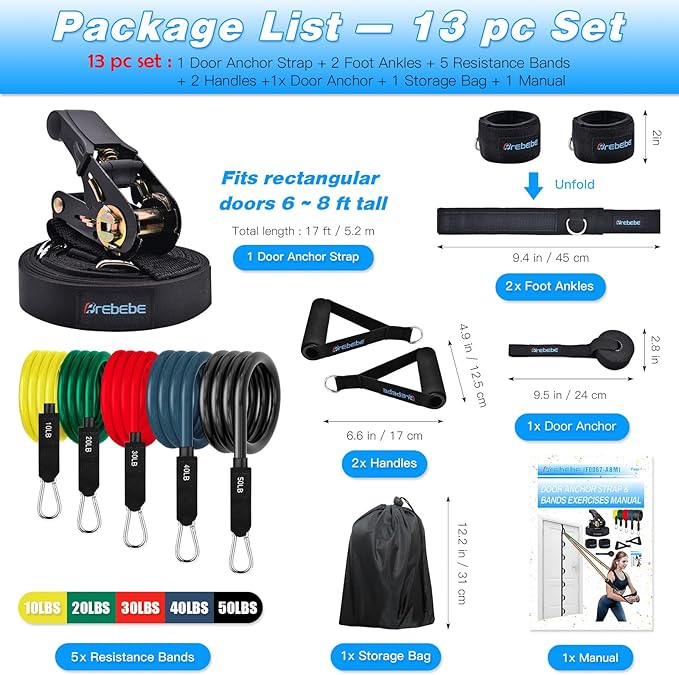 • 🔊【Easy to Install】 No need for any installation tools, no punching, no nails, portable, as long as there is a door. The door height shall not exceed 2.4m (8ft). Rope length 5.2m (17ft).