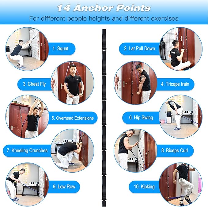 • 🔊【Multi Anchors】 There are 7 position anchors from the strap top to bottom, to meet different exercise modes, can be used by people of all heights. You can choose different heights to complete different exercises.