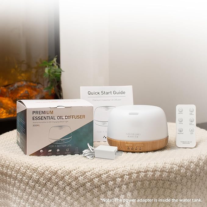 • Small, Compact But Powerful: ASAKUKI aromatherapy diffuser combines the benefits of aromatherapy and humidification in one compact device. Its classic and adorable design with 7-color light options makes it perfect for our bedroom use, with small 5.08"L x 5.08"W x 3.50"H size. The packaging includes a diffuser, USB-C cable, user manual, remote control, and a power adapter.