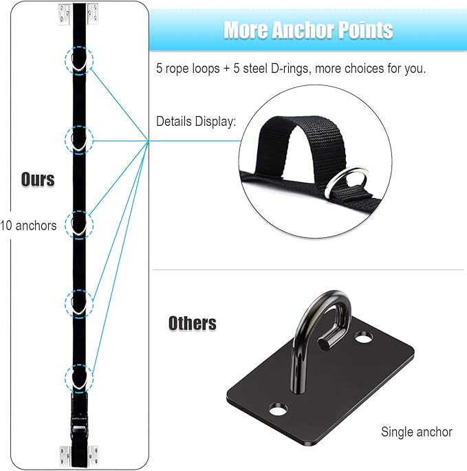 • ⚓【5 D-rings】 We have specially designed 5 stainless steel D-rings on the door anchors, which is more conducive to connecting the carabiners, easy to use.