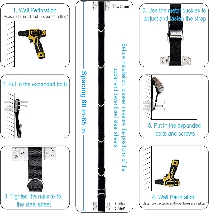 • ⚓【More Stable】 The upper and lower ends of the wall tracks are firmly nailed by metal sheets, which is easy to install. The rope installation length range: 80in-85in.