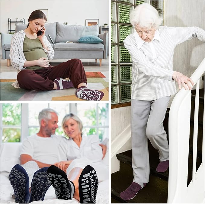 • Better Material: Our company updated the non slip socks' bottom, by a softer, more comfortable cushion added in the bottom. That not only absorbs shock and sweat brought by walk, exercises, but also prolongs socks' life. The Combed Cotton and 100% Silica Grips have better effect in sweat absorption and providing absolutely non-skid, non-slip surface of the socks' bottom.