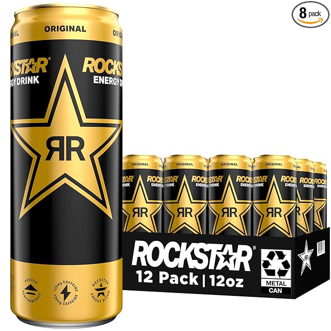 Rockstar Energy Drink, Original, 12oz Sleek Cans (Pack of 8)