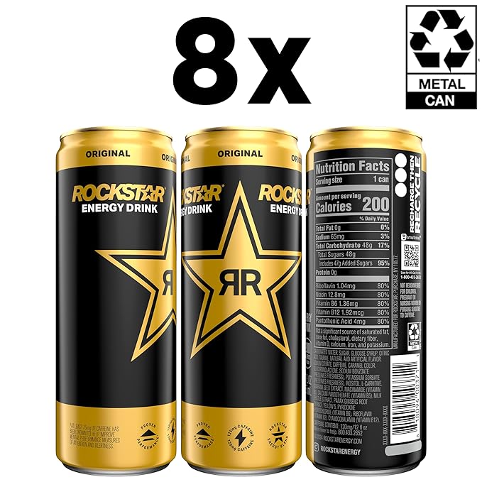 • Includes 8 (12 fl oz) Sleek Cans of Rockstar Energy Drink, Original