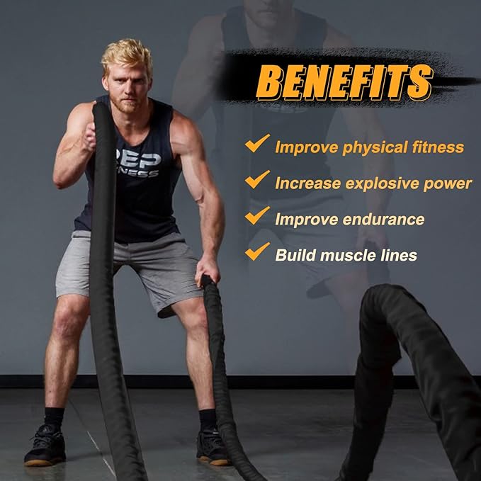 • EFFECTIVE EXERCISE: With cardio conditioning to burn away the fat and shape the whole body in less time! This workout heavy battle rope is a great option for you to do your abs, arm, shoulder, back, and legs workout. Through this dynamic training to slam, whip, and wave rather than simple static lifting, you can maximize your training and achieve your fitness goals in a short time.