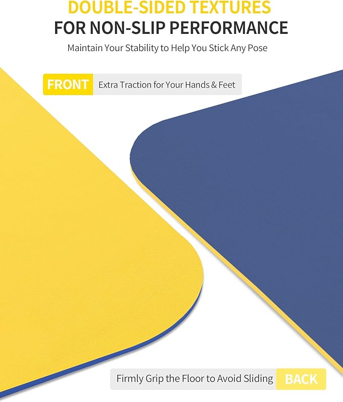• Double-sided Non-slip Surfaces: sufficient grip brings a more connected feel to your practice; help you focus on your breath and postures without the distraction of slipping on the fitness mat; strong traction prevents the grounding mat from sliding or slipping on the floor, like the wood floor, tile floor, and cement floor