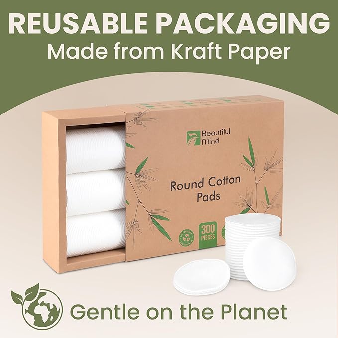 • 𝗩𝗮𝗹𝘂𝗲 𝗣𝗮𝗰𝗸: One box contains 300 face cotton pads, packaged in a kraft box with a pull-out compartment; suitable for up to 4 months of individual use or 2 month for a family; convenient pack protects from dust and keeps makeup pads tidy and makes it great for travel