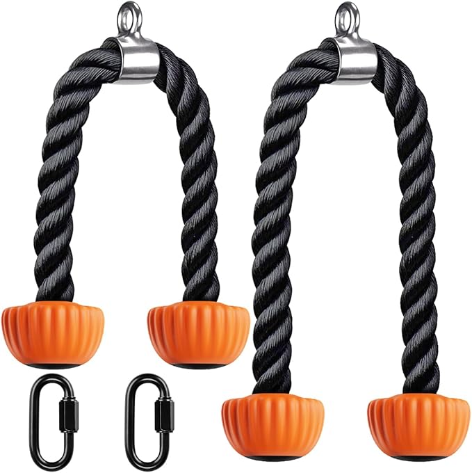 Kipika Tricep Rope, Cable Machine Attachments Pulley System Gym Pull Down Rope, Heavy Duty Nylon Rope with Soft Rubber Ends