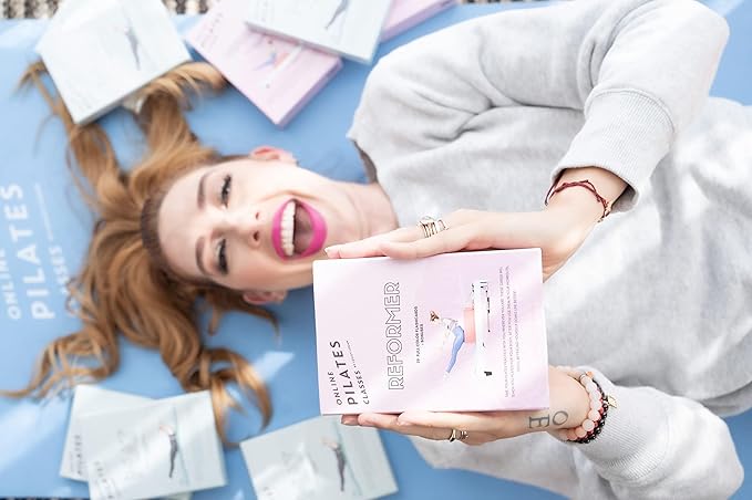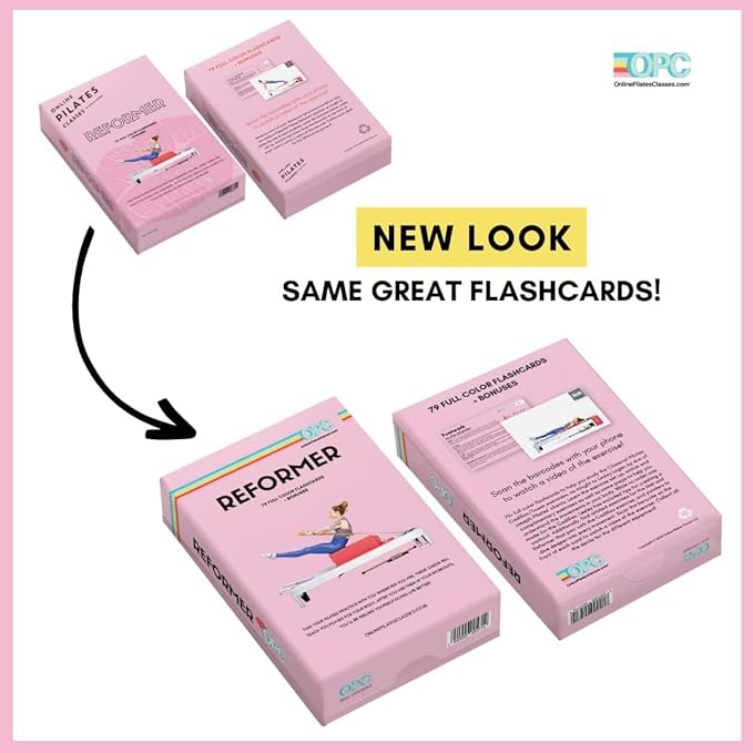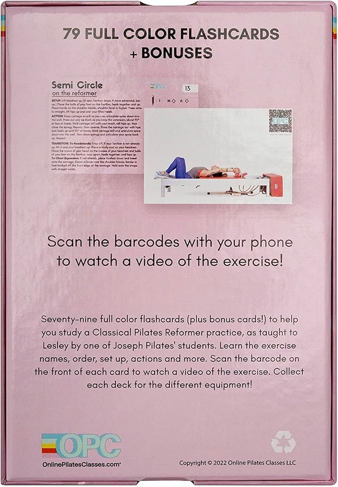 OnlinePilatesClasses Pilates Reformer Deck with Free Video Tutorials, Fitness Flash Cards with 79 All-Levels Cards for Home Gym Exercise, Reformer Not Included