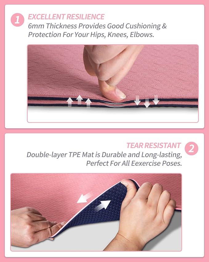 • YOGA MAT WITH STRAP: The yoga mat for women is lightweight and portable with the included carrying strap, providing you an easy way to carry your mat to the gym or yoga studio