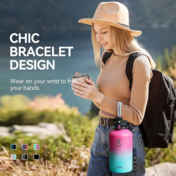 • A Full Pack:64 oz insulated water bottle Included with 3 lids, 1 survival paracord, 2 straws, 1 straw brush, and carrying pouch,1 shoulder strap. this Trebo insulated bottle is fully accessorized to handle any tricky situations,easy to carry clean. Our friendly customer care are always happy to help
