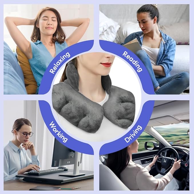 Microwavable Heating Pad for Neck and Shoulders, Weighted Microwave Moist Neck Wrap for Pain Relief Sore Muscle Stress Tension, Heated Wrap with Aromatherapy, Hot & Cold Compress, Grey
