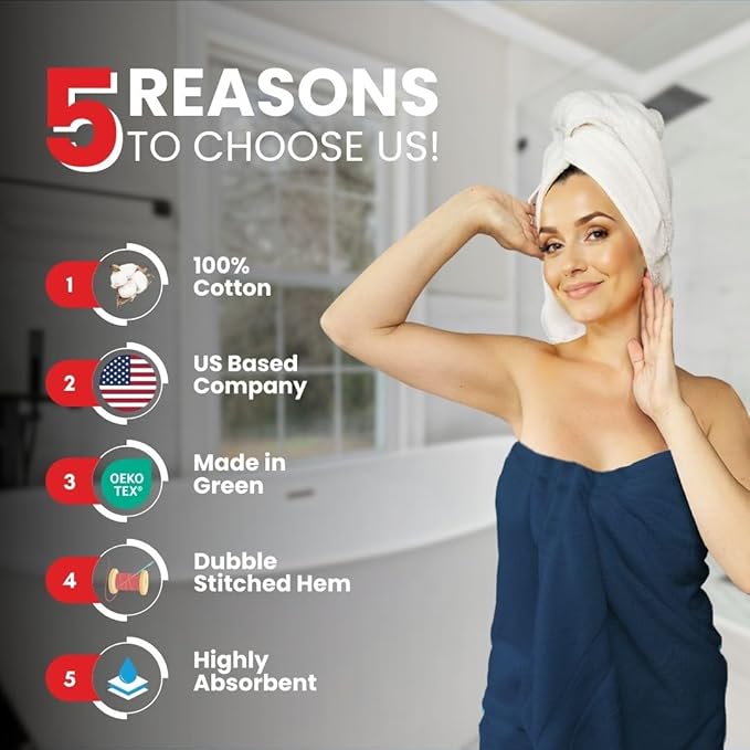 • EXTRA-LARGE SIZE: These 2 luxury cotton bath sheets measure 35 x 70 inches, providing generous coverage and comfort. Ideal for any body size, they are perfect for wrapping yourself up after a relaxing bath or shower.