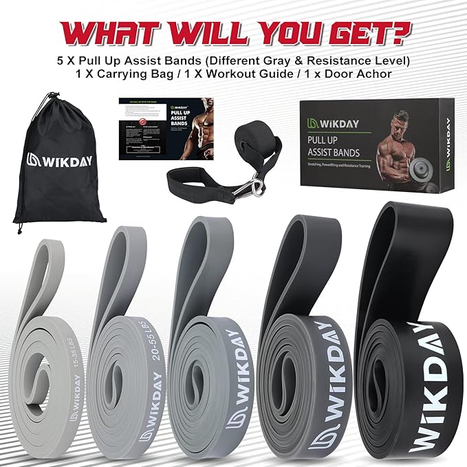 • Wide Applications: This professional exercise bands comes with 5 different levels of resistance with a new door anchor. #1Gray(15-35 lbs), #2Gray(20-55 lbs), #3Gray(25-75 lbs), #4Gray(35-90 lbs), Black(60-170 lbs). They are very suitable for beginners, fitness enthusiasts, athletes and other people