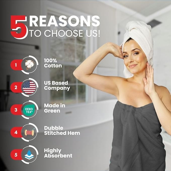 • EXTRA-LARGE SIZE: These 2 luxury cotton bath sheets measure 35 x 70 inches, providing generous coverage and comfort. Ideal for any body size, they are perfect for wrapping yourself up after a relaxing bath or shower.