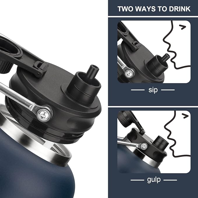 • Travel longer:With 128 oz large capacity, this insulated water bottle allows you to enjoy your trip easier with fewer refills, perfect for camping,hiking and sport events. It's easy to stay hydrated and refreshed on exciting adventures with such a versatile bottle.