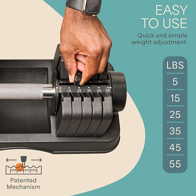 • EASY DUMBBELL WEIGHTS ADJUSTMENT: Just pull & slide the dumbbell weights adjustment knob to select the desired weight & you're ready to train hard! Safe locking allows you to lift with confidence.