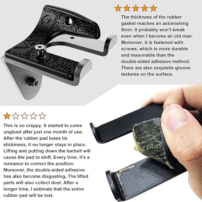 • 【UNIQUE DESIGNED】We know every fitness equipment is your partner. They will help you to get the muscles you want. So we added a protective pad on the hanger to avoid your barbells to be scratched when you place your barbells. There is unique pattern design on the protective pad, which can make the barbell holder more sense of design.