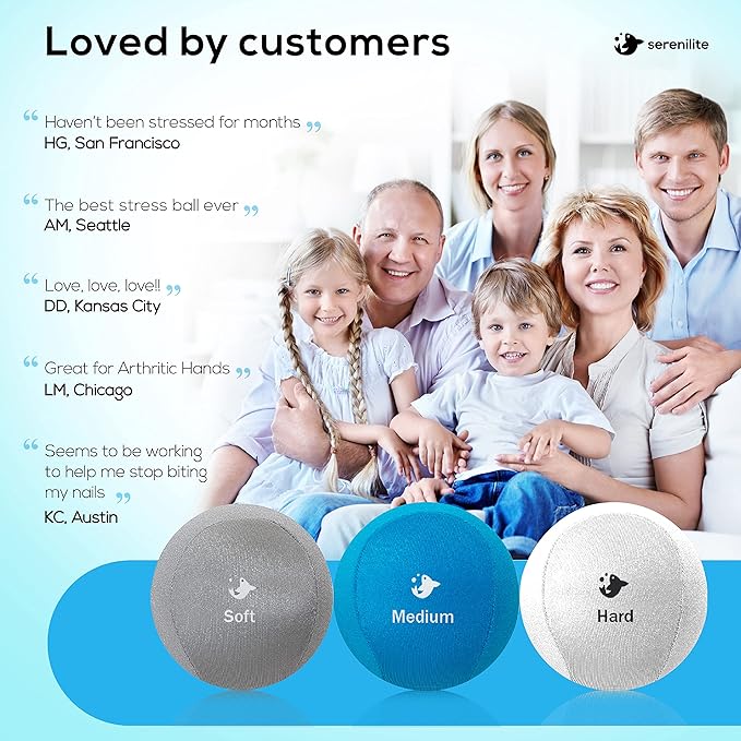 • STRENGTHEN YOUR GRIP, JOINTS & MUSCLES - Every squeeze with our stress ball will strengthen & condition your grip, hands, fingers, and forearms. Our stress balls could reduce symptoms for carpal tunnel, arthritis and help with rehabilitation and post-surgical recovery.